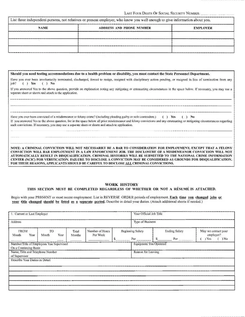 The Alabama 3 form includes questions about your criminal history. It is important to disclose any misdemeanor or felony convictions, as failure to do so may lead to disqualification from consideration for employment. However, a criminal conviction does not automatically disqualify you, except for felony convictions in law enforcement positions. Be honest and thorough in your responses to these questions.