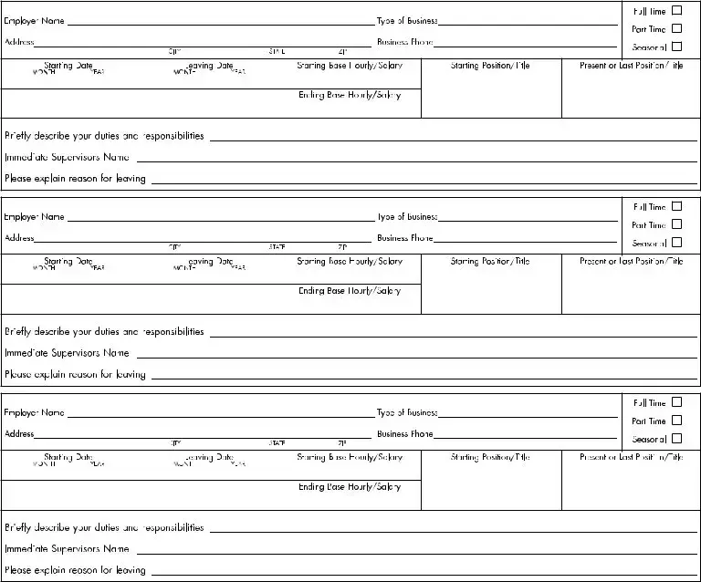 Please indicate previous employment. Start with present or most recent position, including military service. (Use additional sheet if necessary)