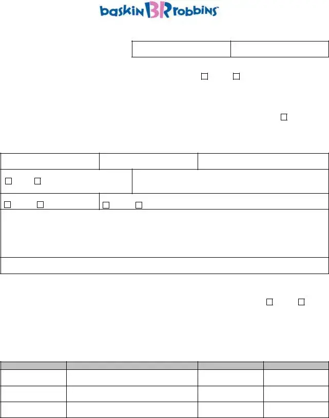 The job form is used to collect information from applicants seeking employment at Baskin Robbins. It gathers personal details, employment history, education, and other relevant information to assess qualifications for available positions.
