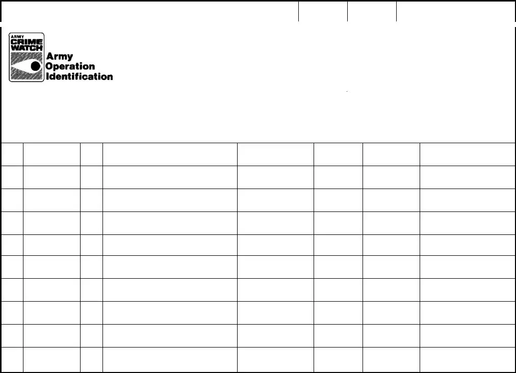 The DA 4986 form, also known as the Personal Property Record, is designed to record identifying data about an individual's personal property. This form is particularly important for high-value items. It assists in the recovery of lost or stolen property and can be used in claims against the government for any loss or damage to personal belongings. By documenting this information, individuals can ensure that they have a reliable record that may help in various situations, including theft or damage claims.