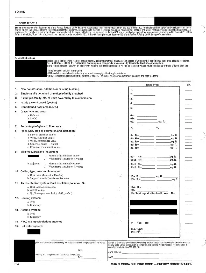 If a building does not meet the compliance criteria set forth in the Florida Energy form or Alternate Form 402, there is still an option for compliance under Section 405 of the Florida Building Code. This alternative method allows for different compliance pathways, although it may require additional documentation and inspection. It is essential to consult with a qualified professional to explore these options if initial compliance is not achieved.