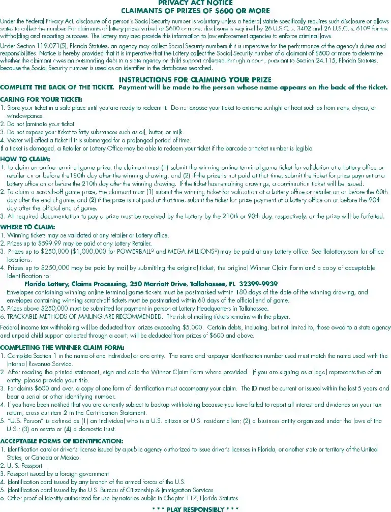 If the required documentation is not received by the Lottery within the specified time frame, your prize will be forfeited. For online terminal game prizes, claims must be submitted within 180 days, while scratch-off game prizes must be claimed within 90 days after the official end of the game.