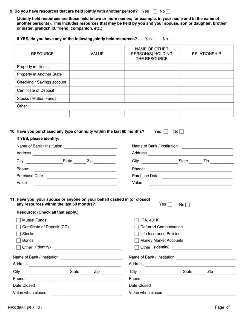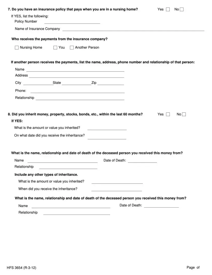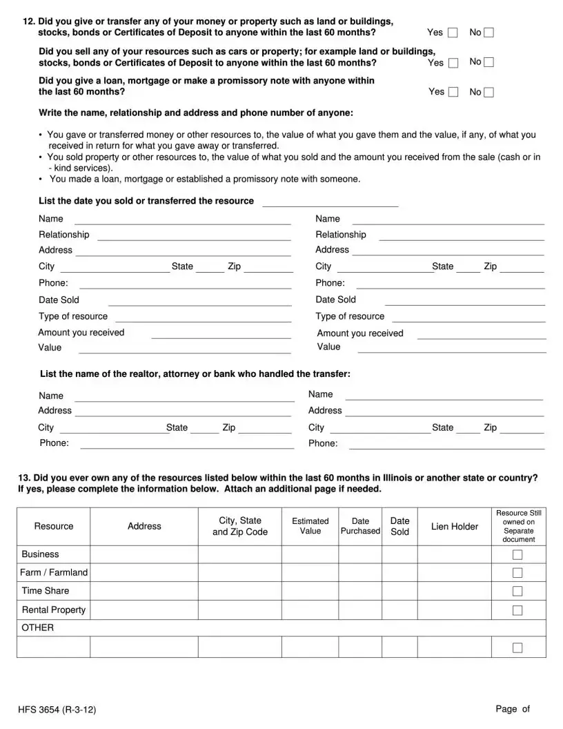 If you inherit money, property, or other assets within 60 months of submitting your application, you must disclose this information on the HFS 3654 form. The form asks for details about the inheritance, including its value and the date received. Inheritances can affect your eligibility for assistance, so it’s essential to report them promptly and accurately to avoid potential issues with your application.