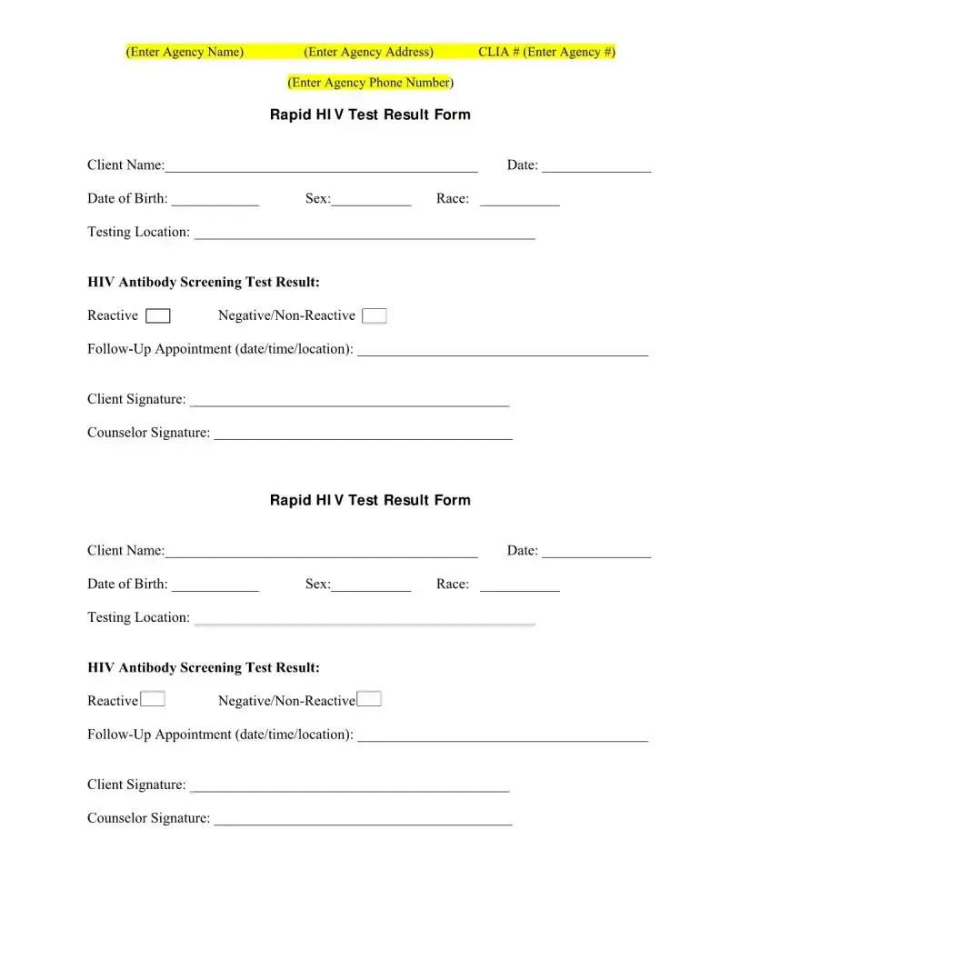 If you lose your Negative HIV Test Form, it is important to contact the testing agency or location where you received the test. They can typically provide a duplicate form or assist in verifying your test results. Keeping a copy of your results is advisable for your records and any future medical or employment needs.