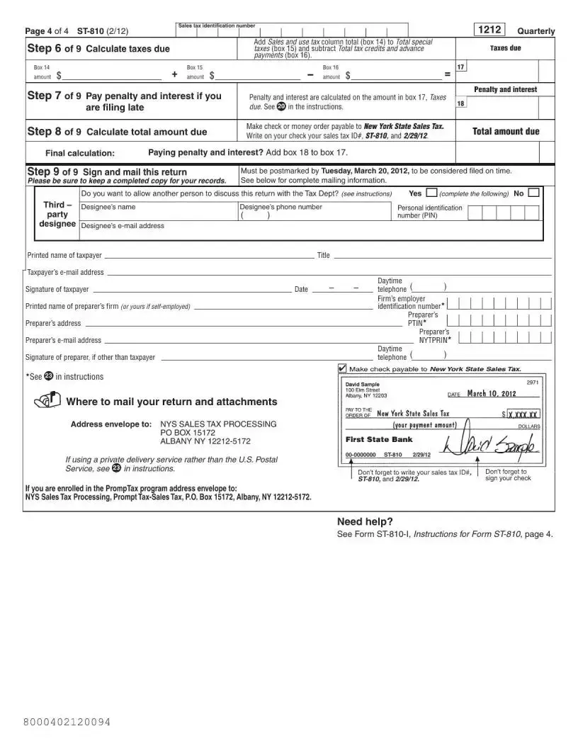 If you have questions or need assistance with the ST-810 form, refer to the instructions provided with the form. You can also visit the New York State Department of Taxation and Finance website for additional resources and guidance.