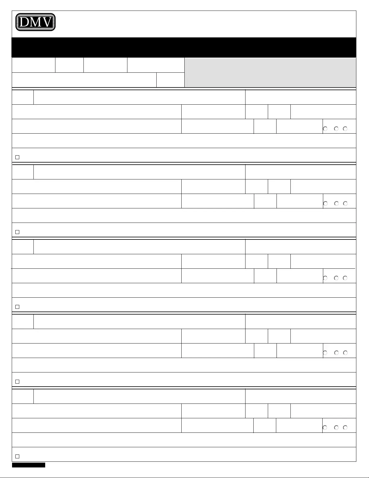 Failure to complete this section may result in DMV sending Notice of Suspension for failure to file a report. Principle purpose of