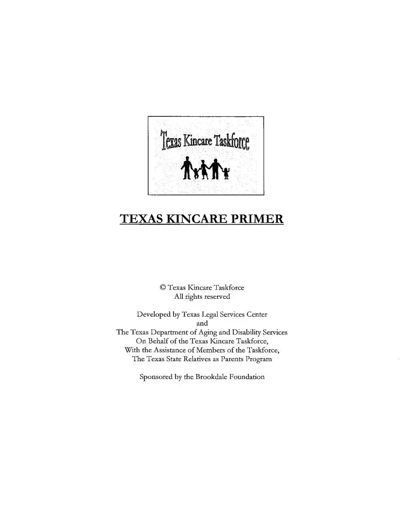The Texas Kincare Primer can usually be accessed online through the Texas Legal Services Center or the Texas Department of Aging and Disability Services. It may also be available in print at local community centers, libraries, or through organizations that support relative caregivers.