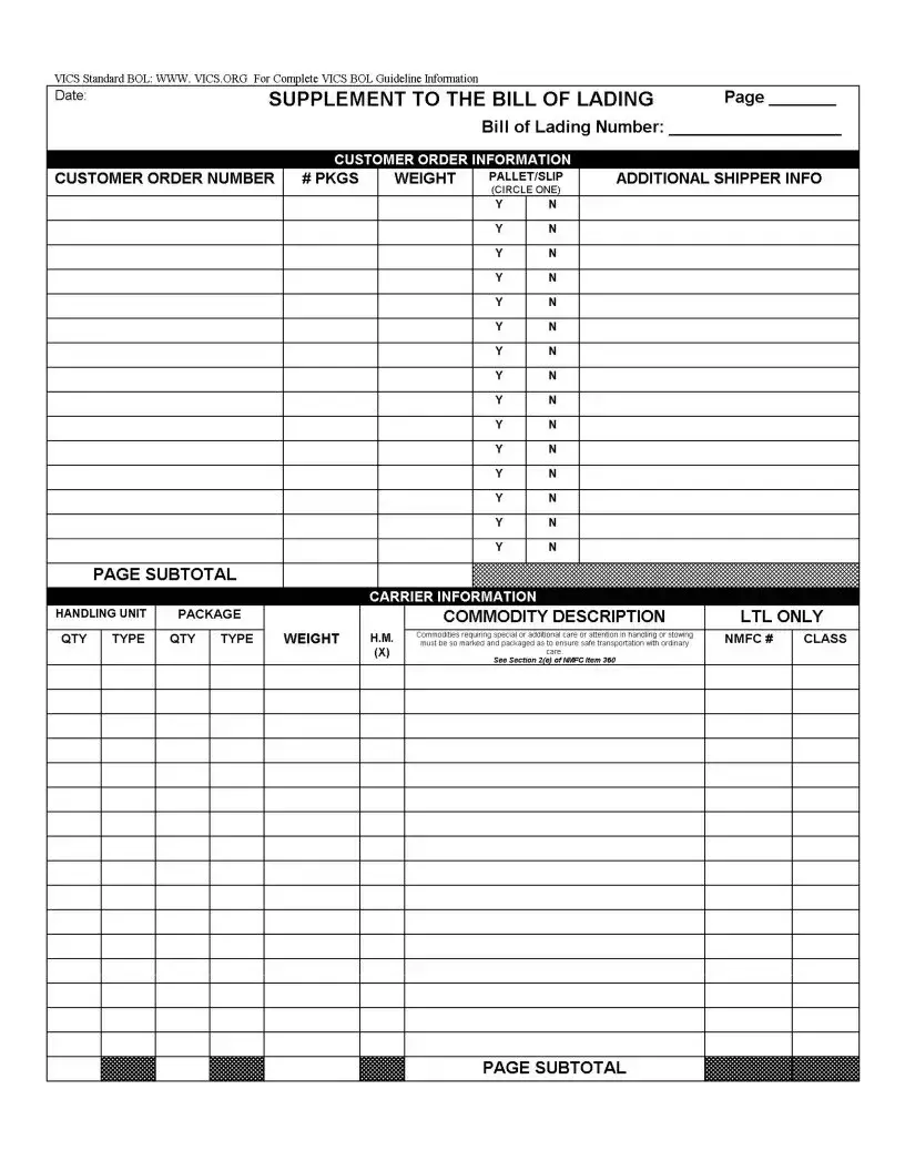 The VICS Bill of Lading form is a standardized document used in the shipping and transportation industry. It serves as a receipt for goods, a contract between the shipper and carrier, and a document of title. The VICS BOL is designed to streamline shipping processes and ensure compliance with industry regulations.